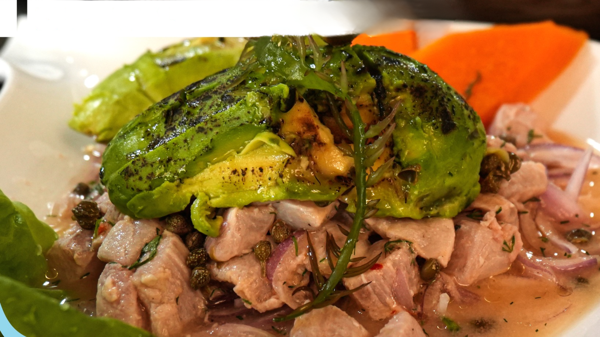 Ceviche de pescado, chaufa de mariscos y chicharrón de pescado